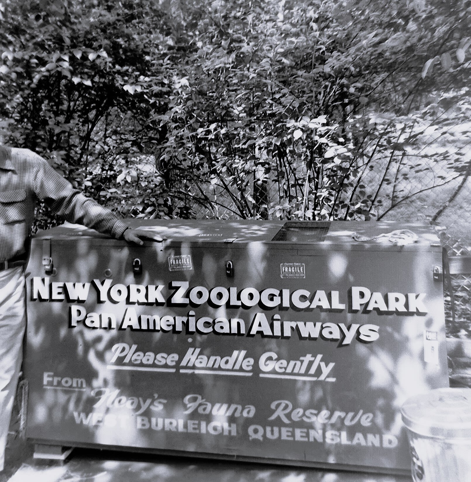 A third trip to New York happened 10 years later, but this time by plane. Paul and Pamela were flown from Fleay's Fauna Reserve in Burleigh Heads, Queensland, to the Bronx Zoological Park, aboard a commercial Pan American Airways flight.