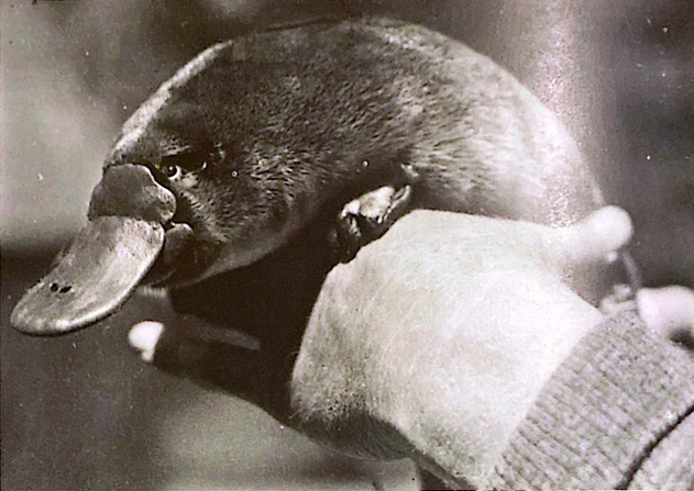 David Fleay, Betty - unique among female duckbills in acquiring a test for steamed-egg preparation, 1947, Also housed in Australian Museum Fleay Archives, in Paradoxical Platypus: Hobnobbing with Duckblls, by David Fleay (Jacaranda Press), 74.